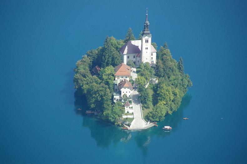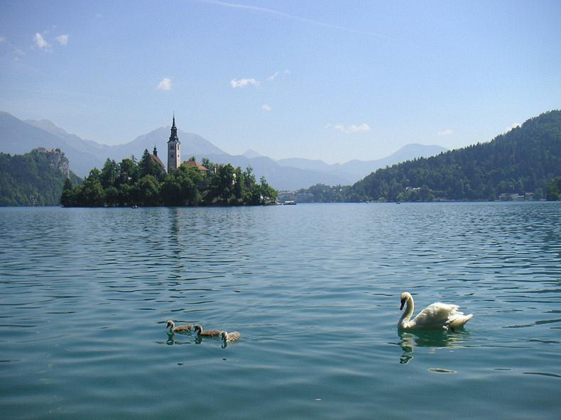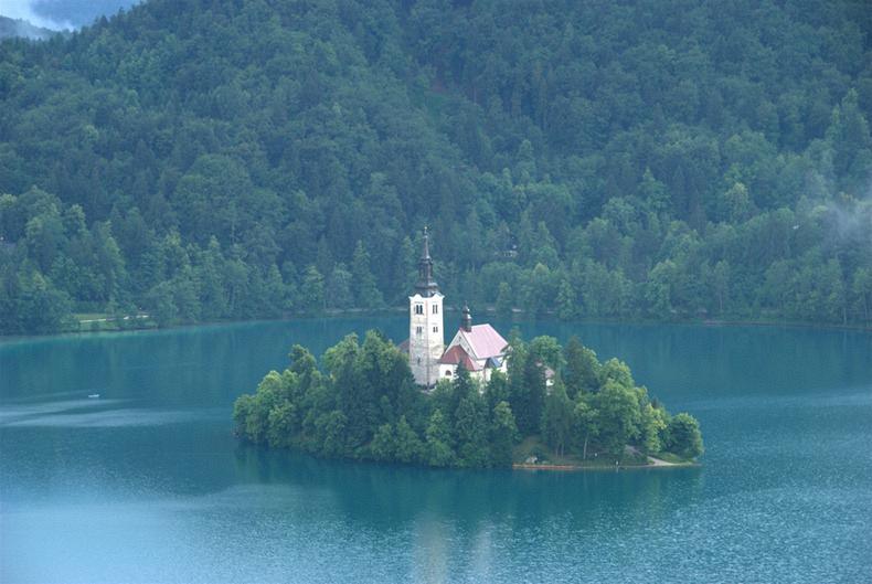 Κι όμως. Έχει ένα, που στέκει μόνο του στην μέση της λίμνης Μπλεντ.