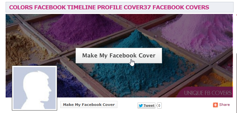 Επιλέξτε το Cover της αρεσκείας σας και τοποθετώντας τον δείκτη του ποντικιού επάνω στην εικόνα θα δείτε την ένδειξη Make My Facebook Cover, πατήστε επάνω και αυτομάτως το cover που επικλέξατε θα εγκατασταθεί στην ιστοσελίδας σας.